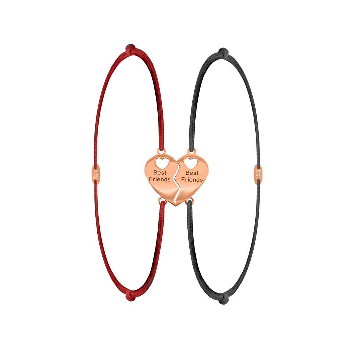 Oferă unui prieten apropiat un set special de brățări asortate, transformat într un simbol durabil al apartenenței prin inima care se poate despărți și inscripția "Best Friends". În nota comenzii, precizați ce pereche de brățări este dorită, în ce mărime și cu ce culoare a șnurului.