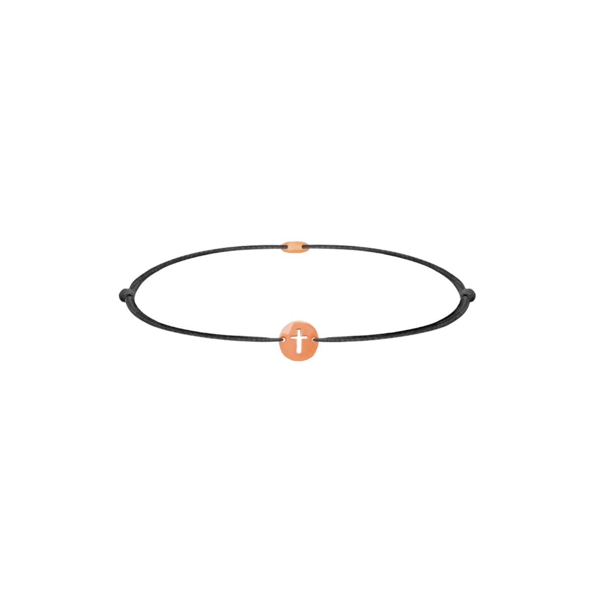 Brățară pe șnur din aur roz 14K pentru bebeluși, cruce în cerc