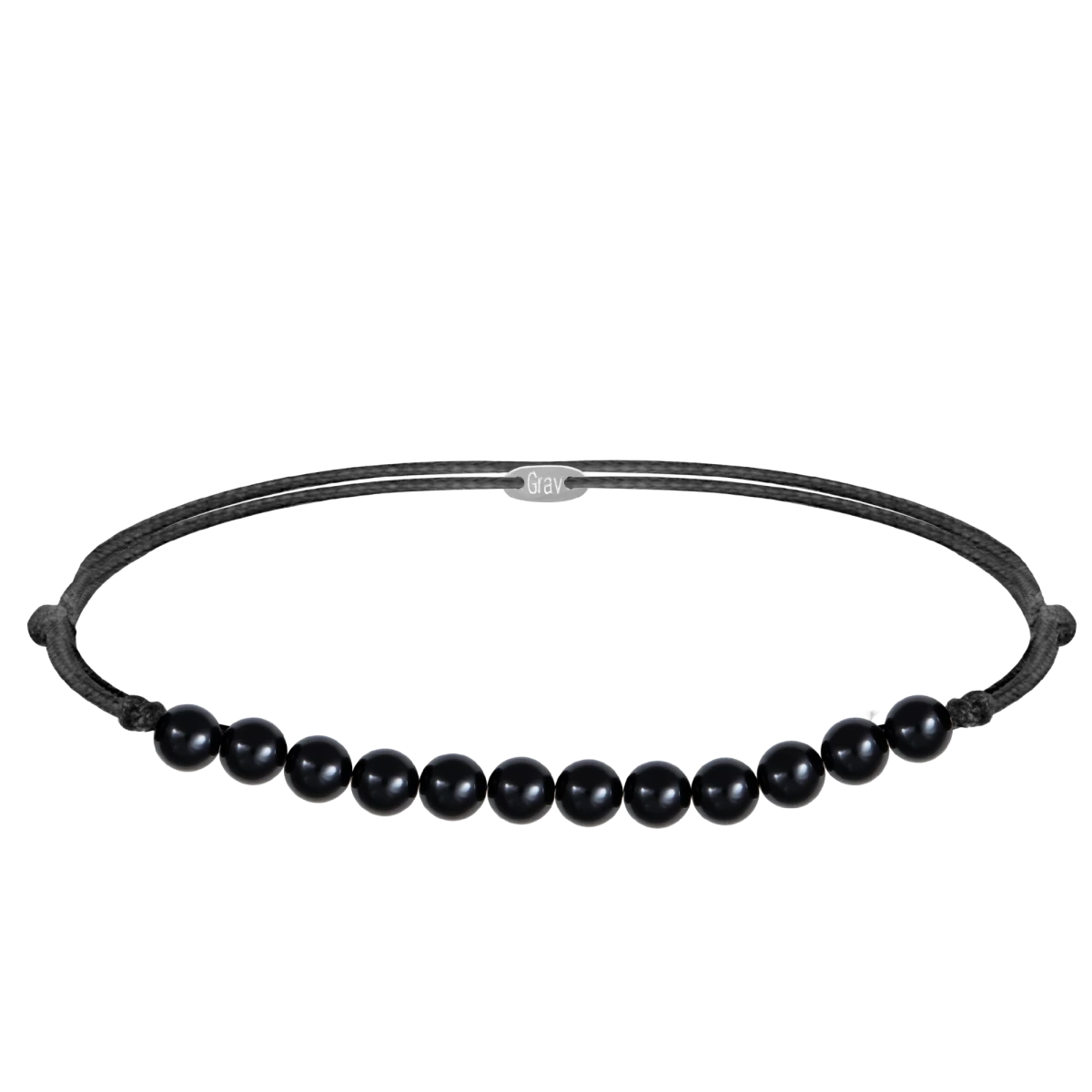 Brățară bărbătească mare pe șnur cu mărgele din argint
