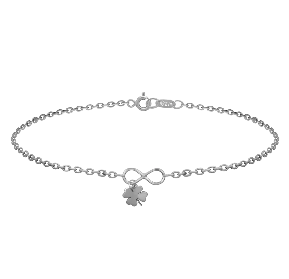 Fii infinit de norocoasă și poartă această brățară norocoasă. Pandantivul trifoi suspendat, plasat pe simbolul infinitului, este o piesă unică realizată manual, care va evidenția cu siguranță stilul tău unic. Alege o pentru tine sau oferă noroc unei persoane dragi.