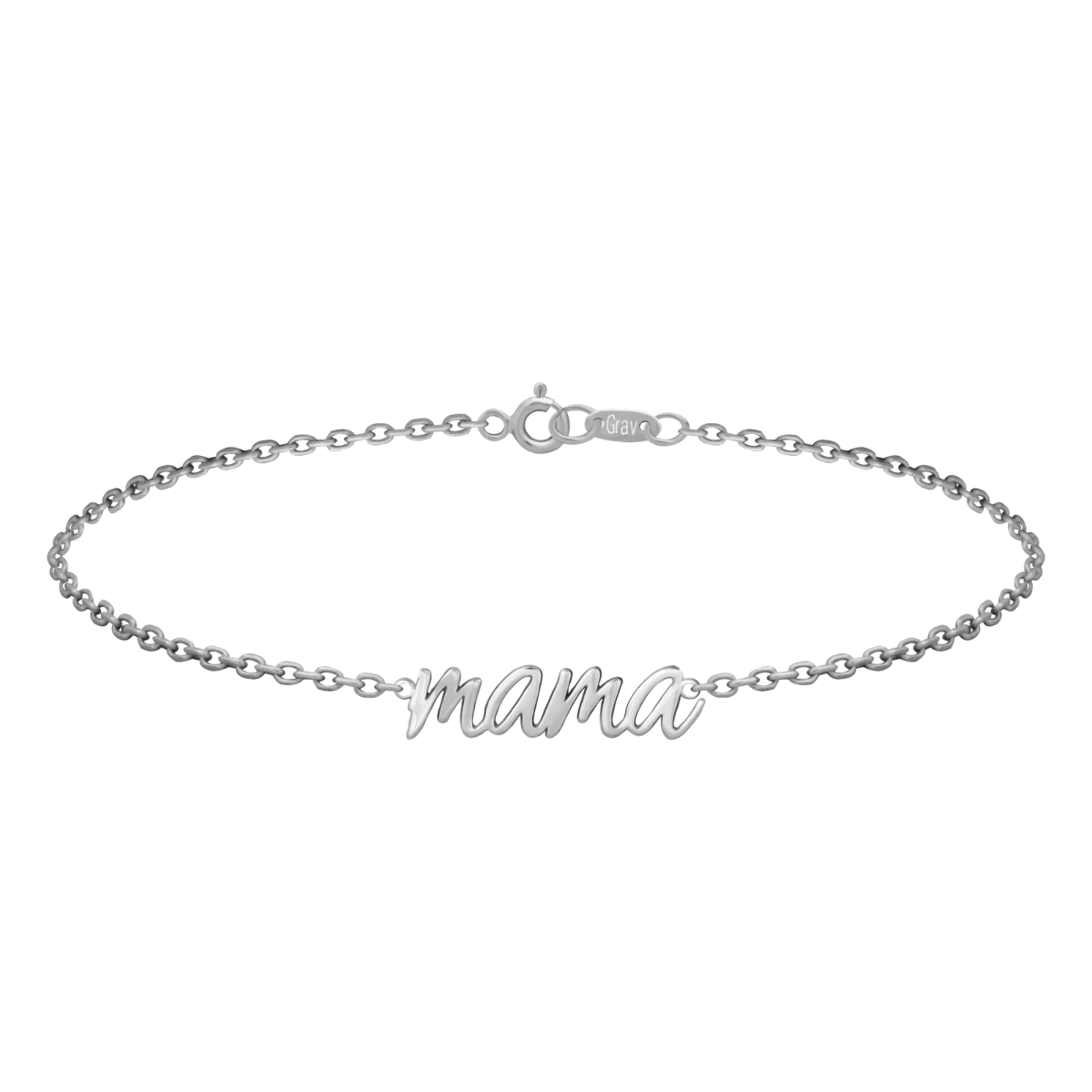 Brățară realizată manual cu inscripția Mama, făcând orice ocazie specială. Pandantivul este realizat cu fontul Allura.