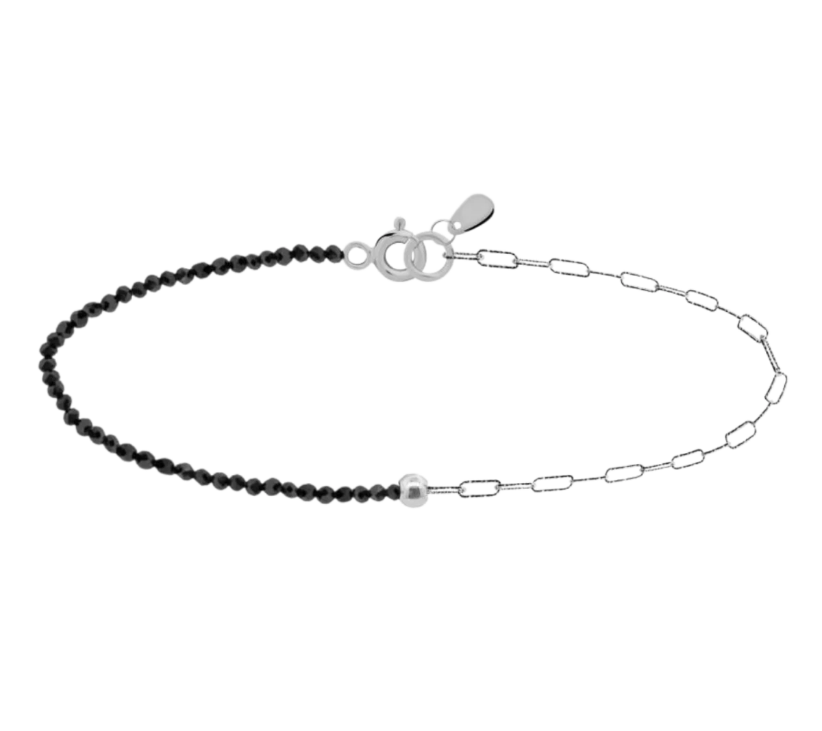 Întâlnirea dintre mineral și metal prețios într o piesă de bijuterie. Suprafața zalei ovale este gravată, realizată diferit față de lanțurile tradiționale. Dimensiunea zalei: 3 x 7,5 mm. Brățara cu spinel îi captivează pe toți prin frumusețea sa specială. Nu doar frumoasă, ci și un mineral vindecător. Spinelul evidențiază laturile pozitive ale personalității. Întărește conștientizarea de sine și ajută la obținerea succesului.