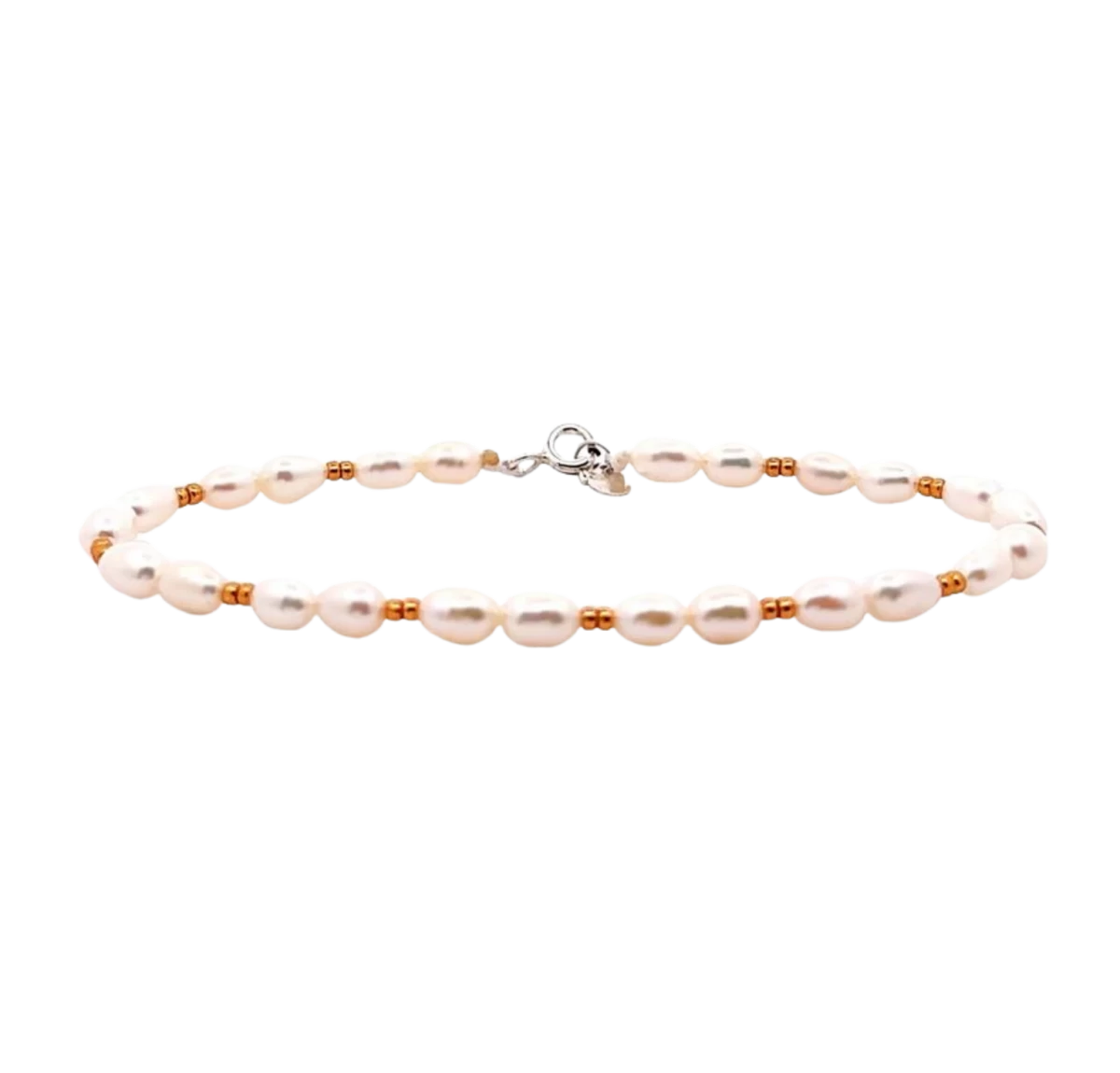 Brățară din argint 925 cu perlă albă de apă dulce și mărgele mici culoare aur galben