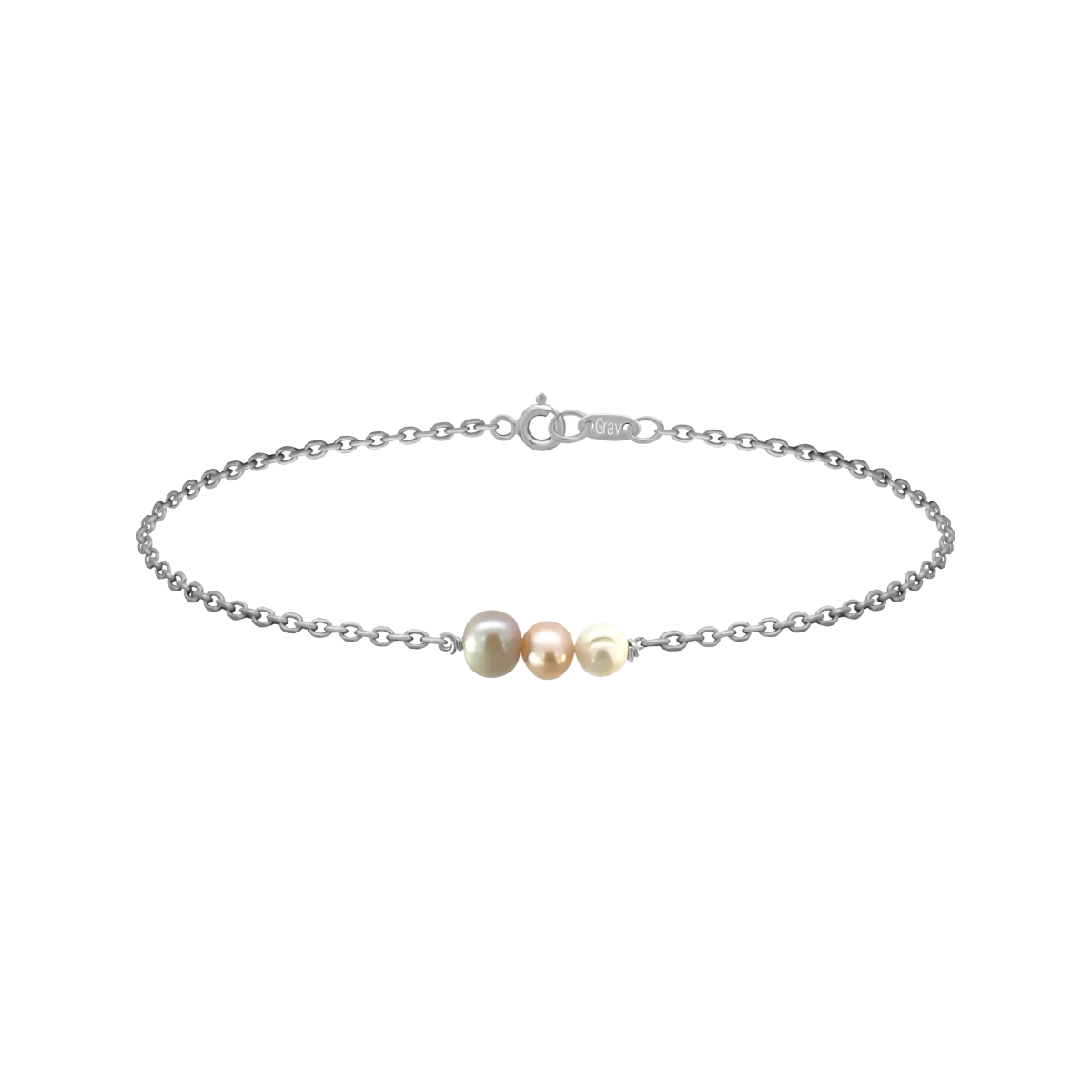 În această bijuterie frumoasă, sunt prezentate varietăți cu adevărat speciale de perlă de apă dulce în alb, roz și gri. Armonia perfectă a celor trei culori, cu mici diferențe subtile de nuanță, creează o senzație de eleganță și perfecțiune și are un efect calmant. O bijuterie deosebit de elegantă.