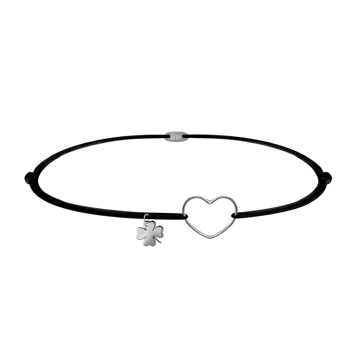 Brățară cu șnur din argint cu inimă contur și trifoi