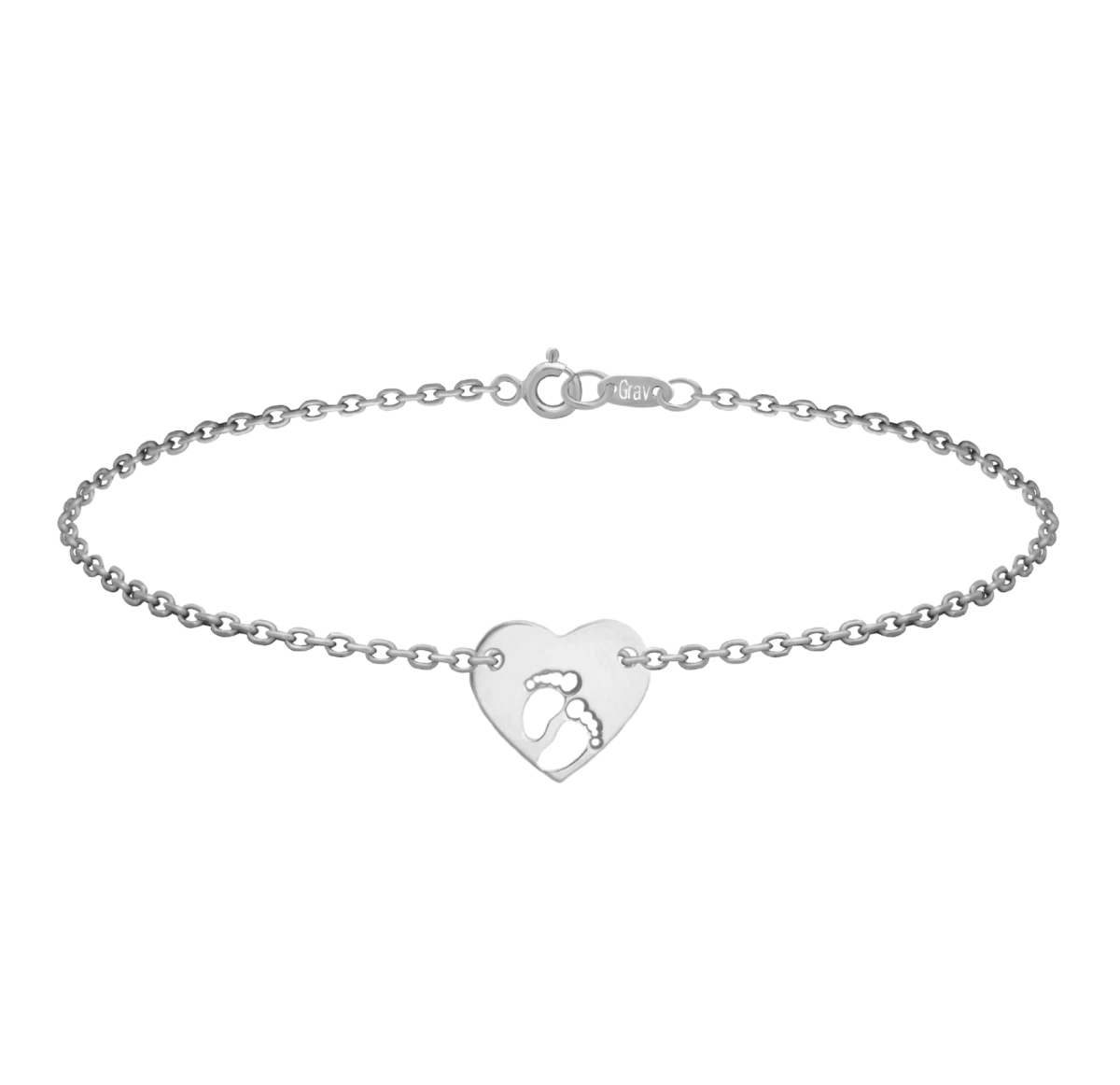Brățară din aur alb cu inimă și picioruș de bebeluș