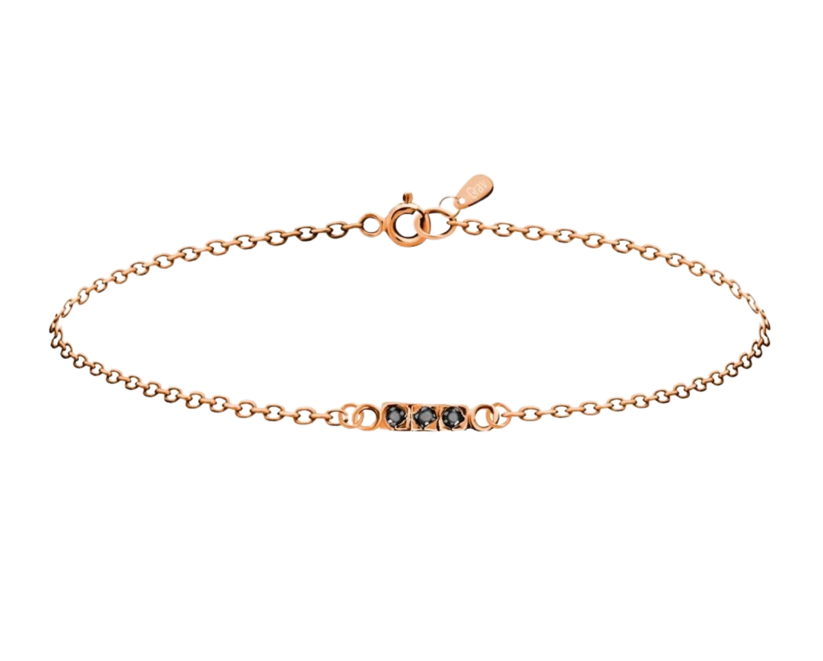 Brățară din aur roz 14K cu 3 pietre din zirconiu negru
