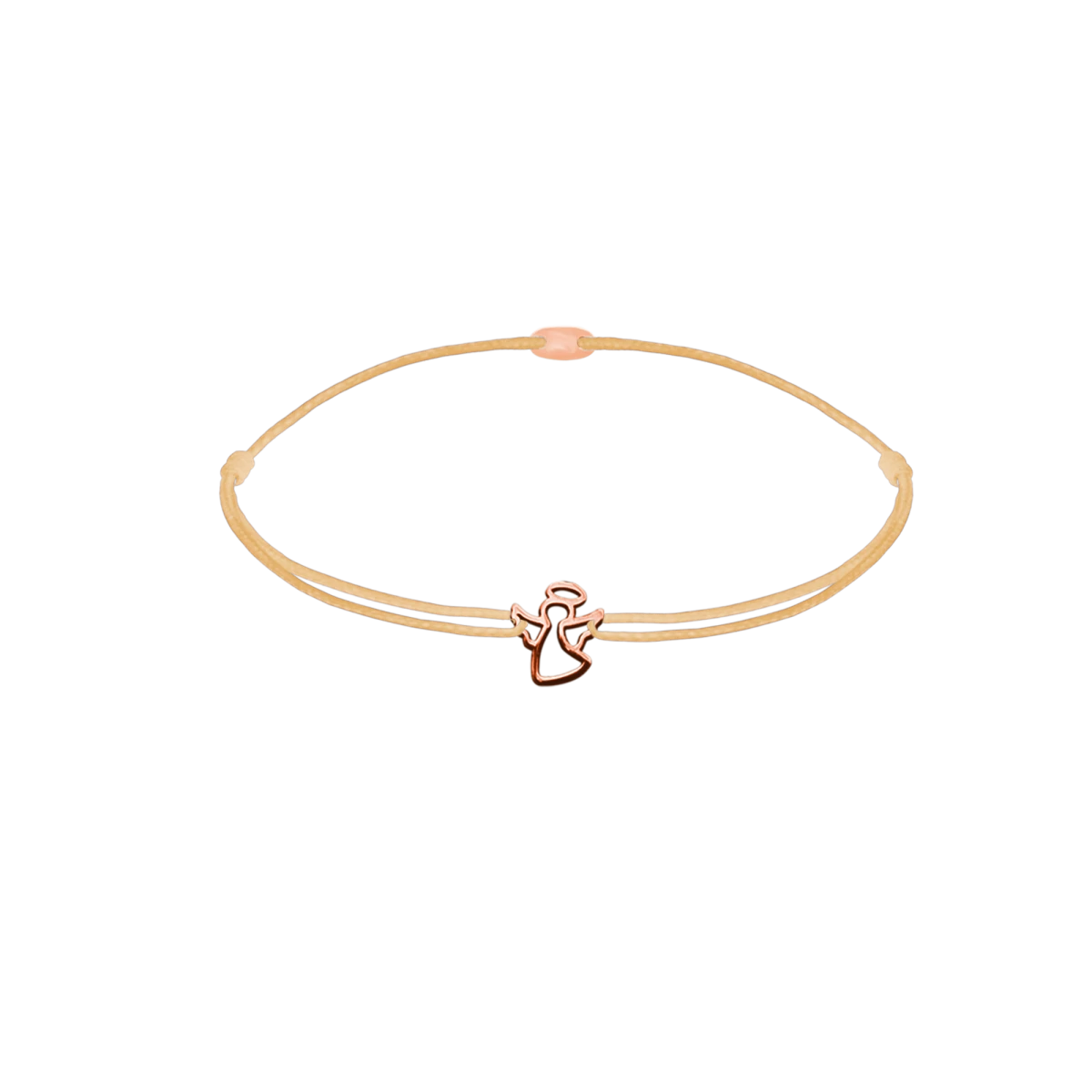 Înger contur cu aureolă brățară cu șnur pentru bebeluși din aur roz 14K