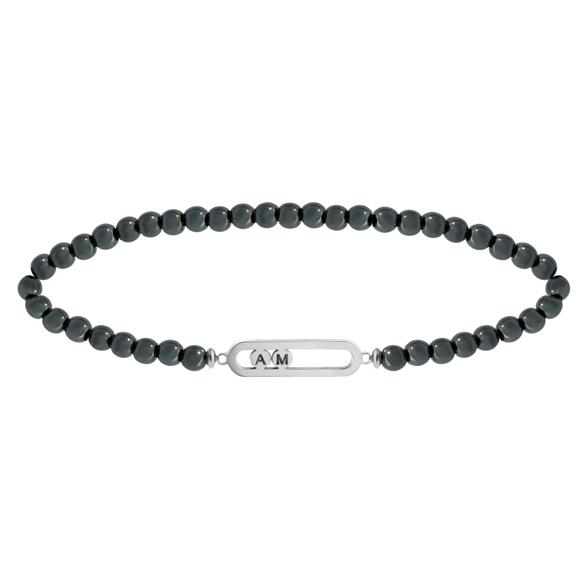 Brățară cu ac de siguranță, mărgele din mineral hematit, argint sterling 925