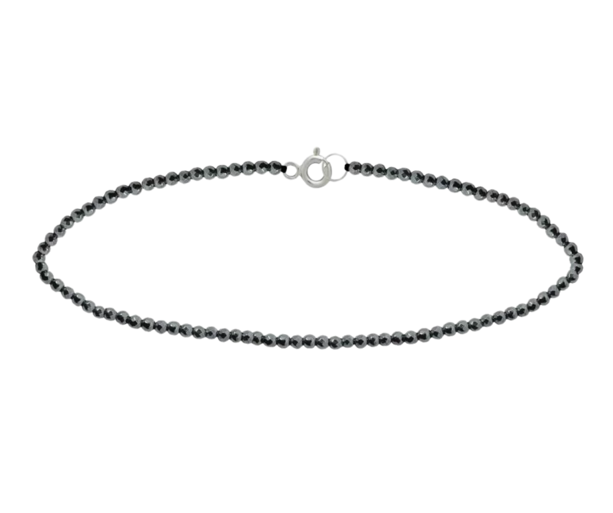 Această brățară strălucitoare din hematit oferă purtătoarei un aspect elegant, deoarece luciul metalic al formei fosilizate de oxid de fier a mineralului arată diferit din fiecare unghi. Se armonizează perfect cu stilurile moderne și minimaliste, evidențiind frumusețea curată a materialelor naturale. Conform tradițiilor ezoterice, ajută la menținerea echilibrului dintre corp și suflet. Dimensiunea mineralelor: 2 mm, brățara se poate fixa cu o închizătoare din argint 925.
