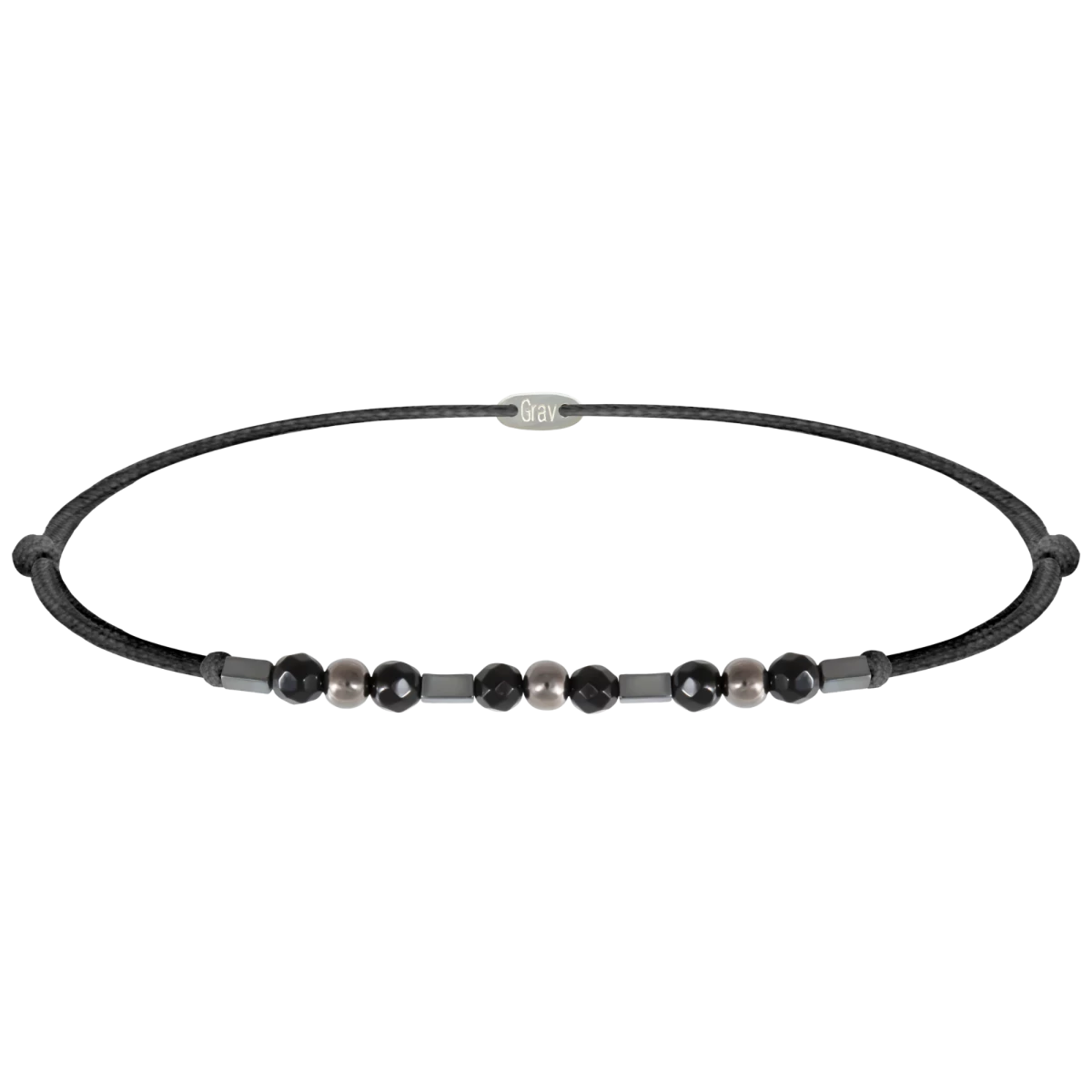 Una dintre noile combinații de brățări care emană o forță autentică, cu piatră de onix negru, hematit și mărgele din argint. Onixul este un mineral puternic de protecție, crește vitalitatea și perseverența și oferă sprijin în situații stresante. Hematitul oferă purtătorului putere și soliditate. Ai încredere în efectele benefice ale mineralelor.