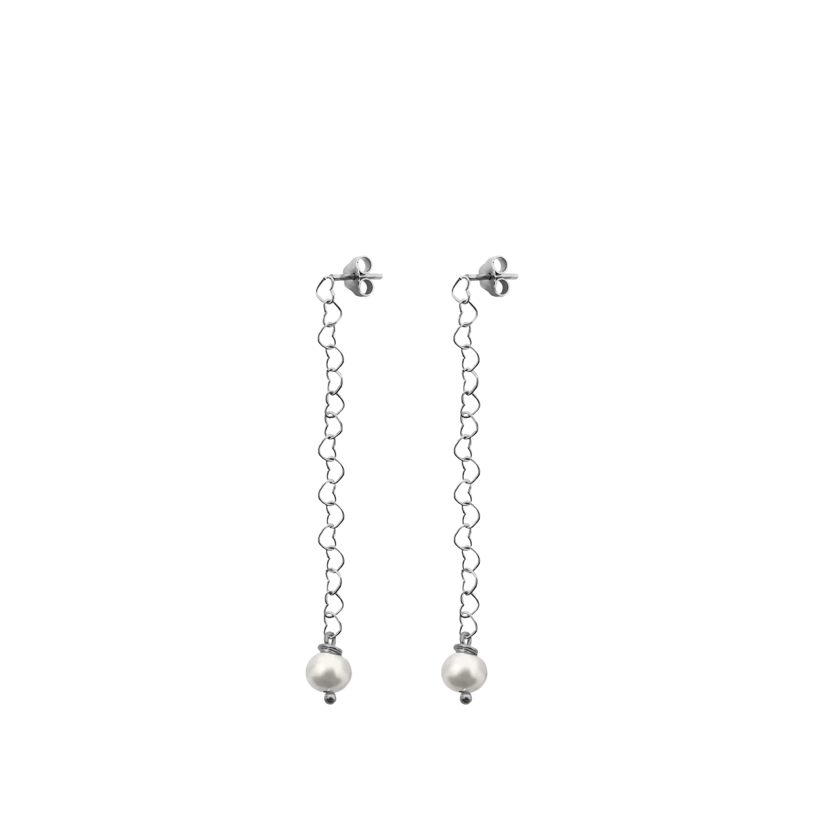 Cercei din argint 925 cu lanț inimă și perlă de cultură de apă dulce