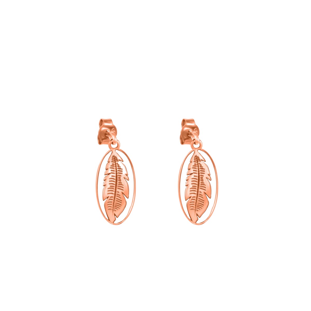 Cercei din aur roz 14K cu pană într o ramă ovală