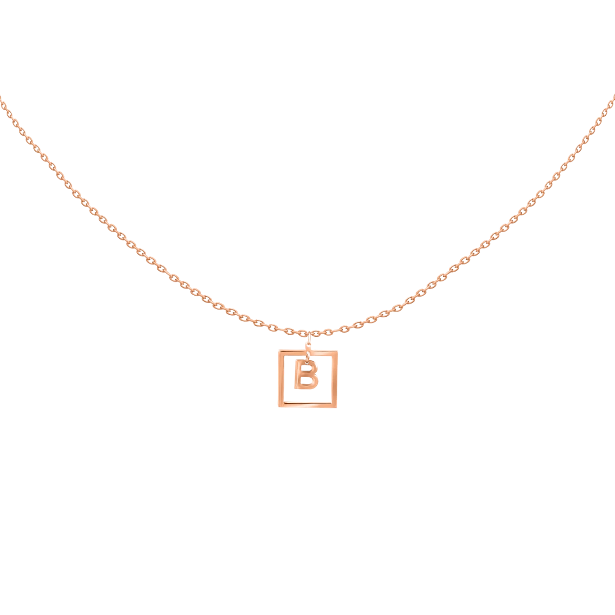 Colier din aur roz 14K cu literă în ramă