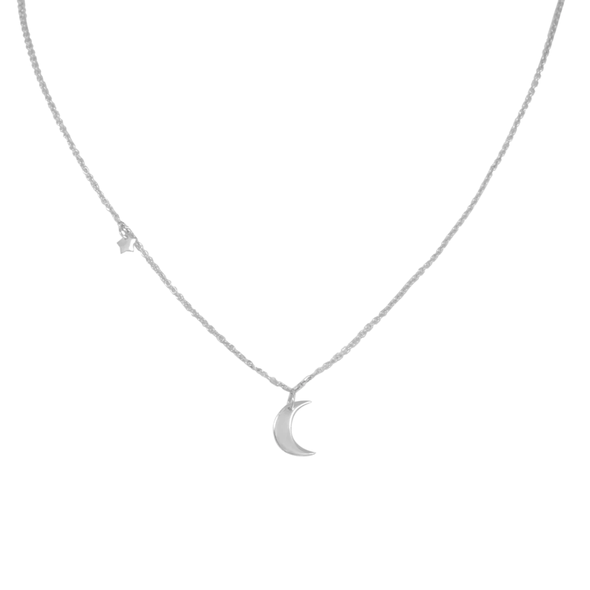Pandantiv frumos cu lună și un pandantiv mic cu stea. Combinația perfectă captivează pe oricine prin frumusețea inspirată de cer. Această bijuterie specială este o idee de cadou perfectă, dar și o surpriză excelentă pentru tine.