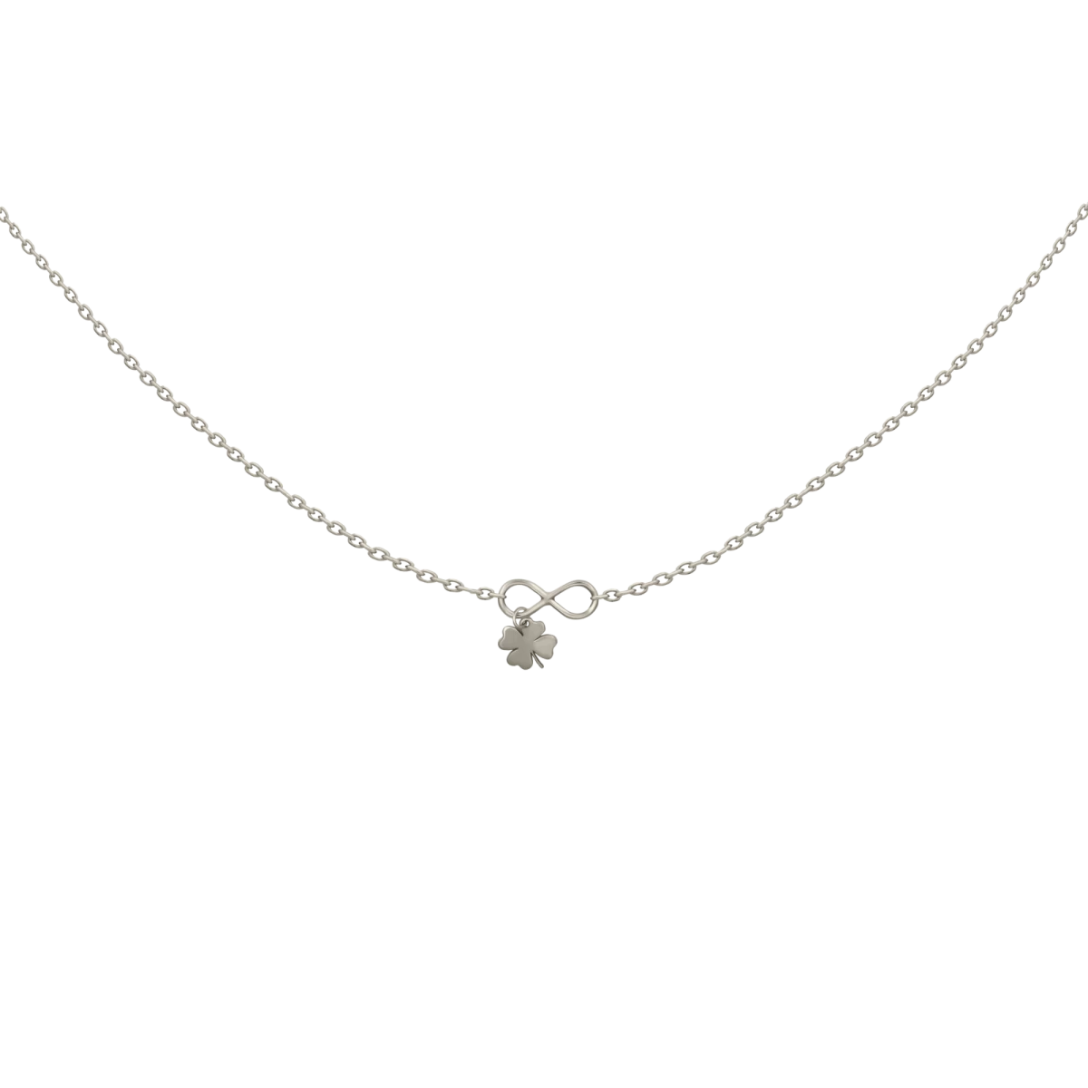 Simbolul infinitului prezintă un pandantiv cu trifoi norocos. Norocul va fi mereu alături de tine cu acest colier fermecător. Fii norocos și găsește colierul care se potrivește cel mai bine personalității tale.