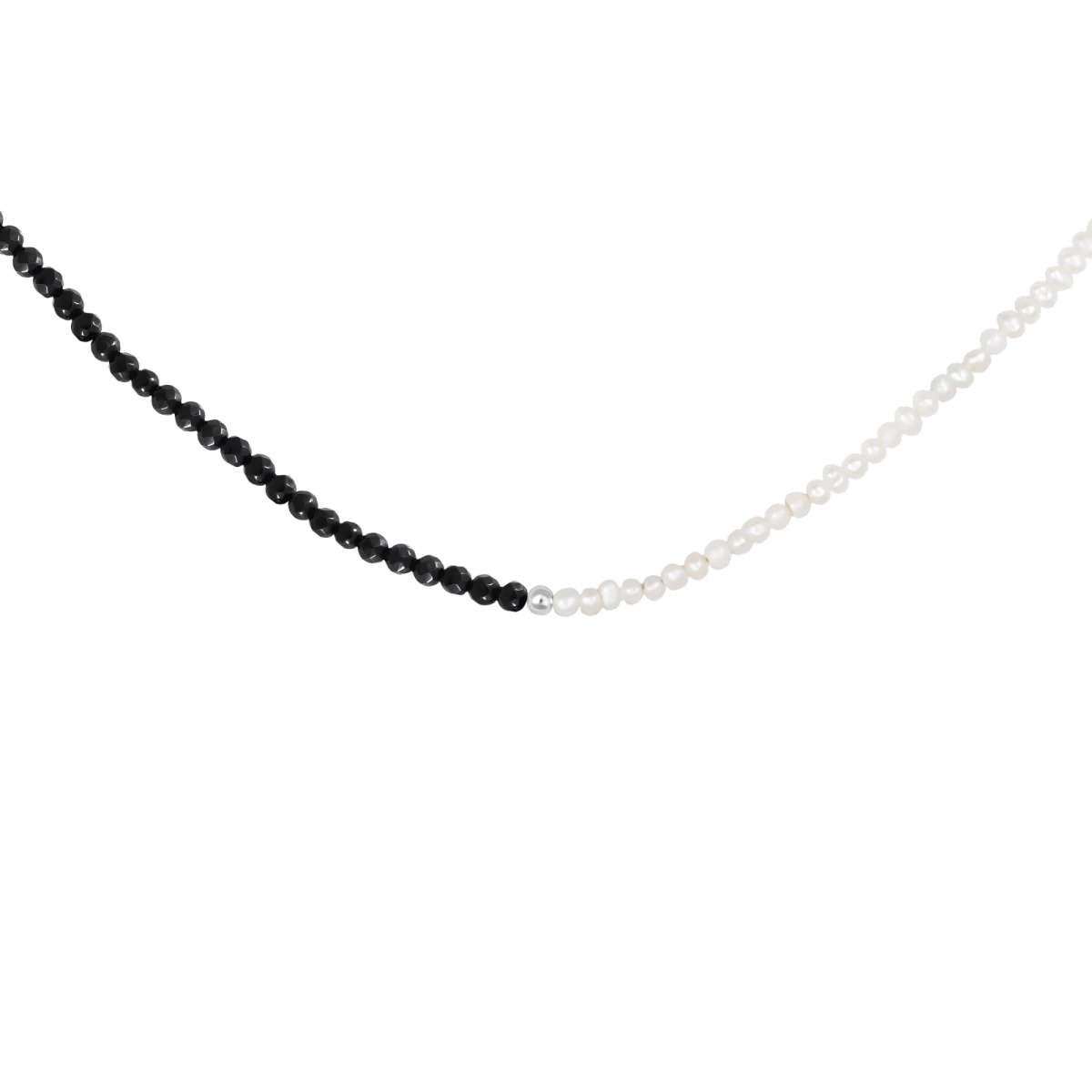 Colier din onix negru și perlă albă de apă dulce din argint 925