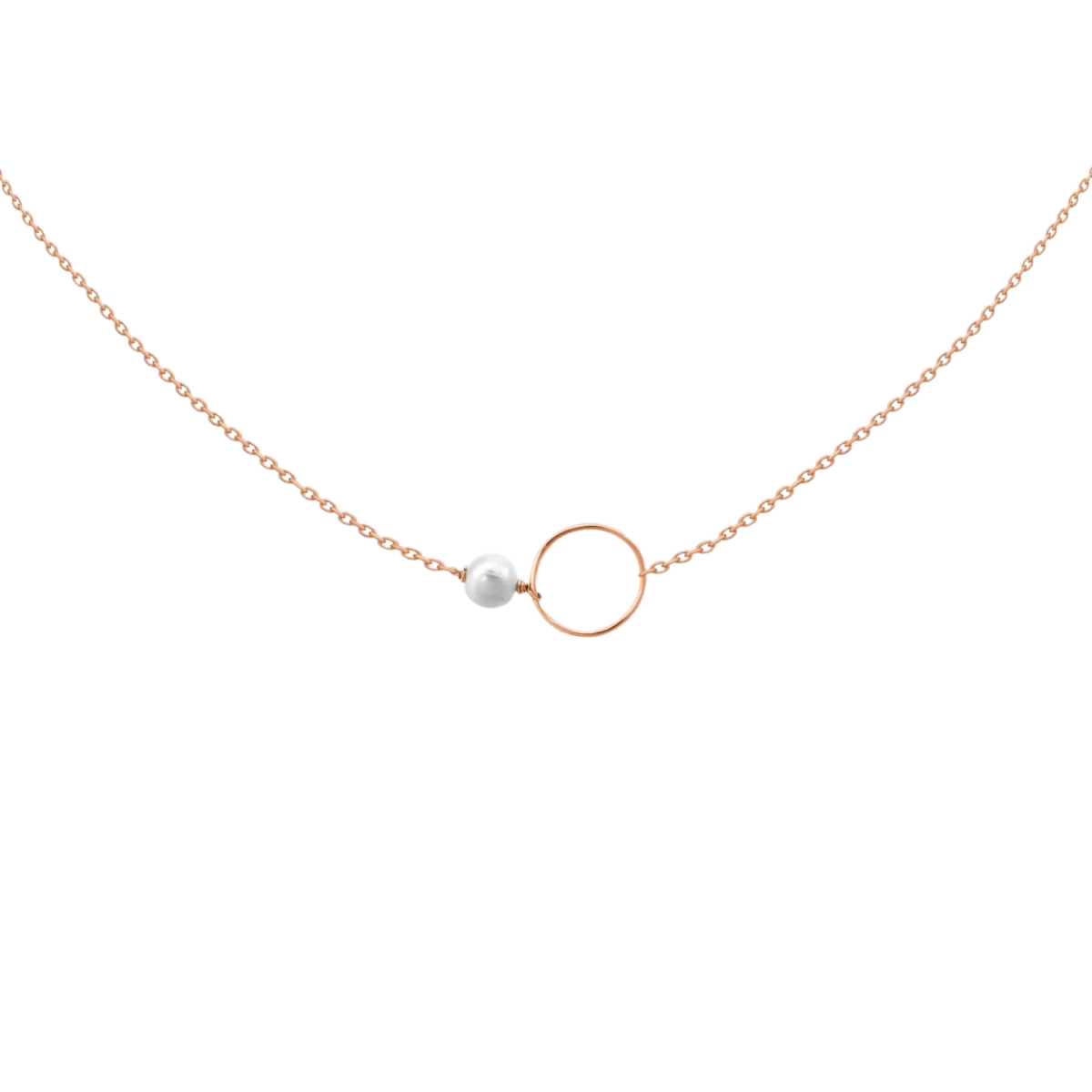 Colier din perlă de apă dulce și cerc contur din aur roz 14K