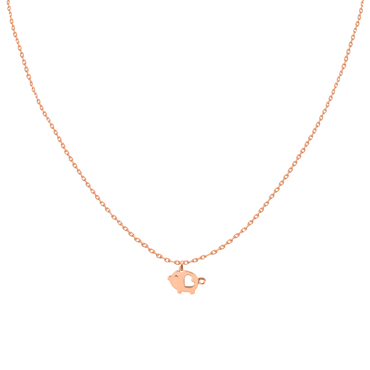 Colier pentru bebeluși Lucky Piglet din aur roz 14K