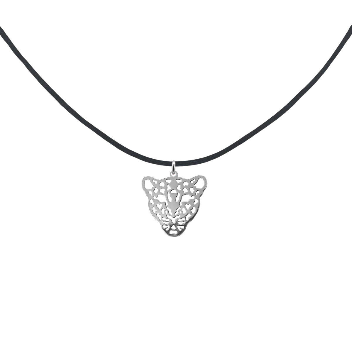 Colier cu șnur și leopard din argint 925