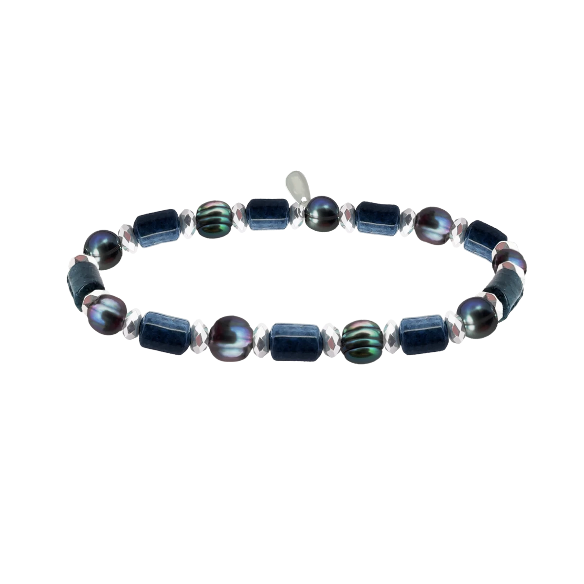 Brățară din argint 925 cu dumortierit, hematit, mineral și perlă tahitiană