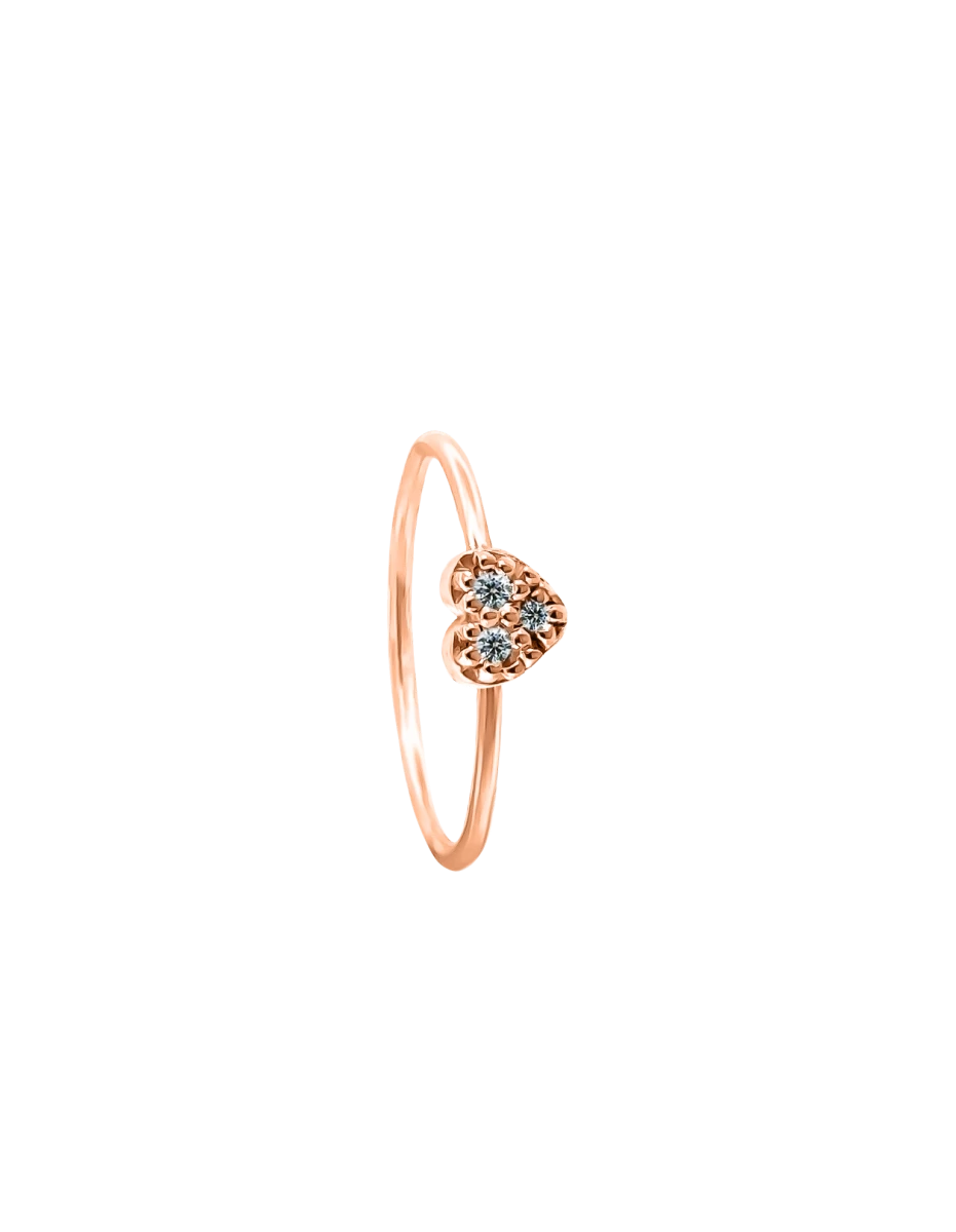 Inel inimă din aur roz 14K cu zirconiu cubic și piatră semiprețioasă