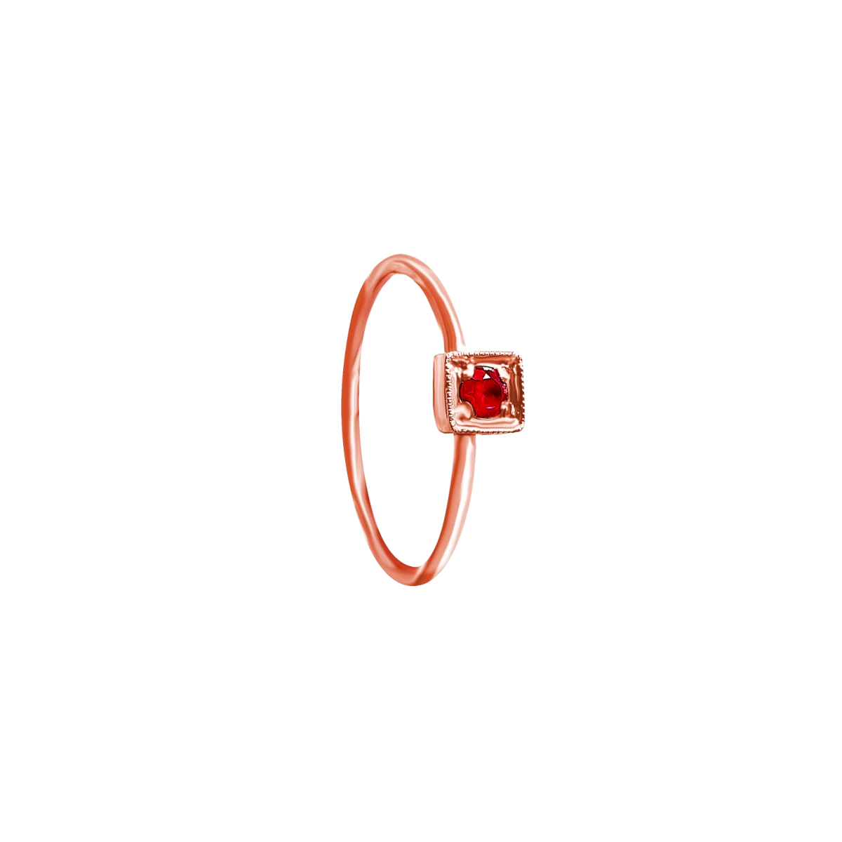 Inel din aur roz 14K cu 1 piatră zirconia roșie