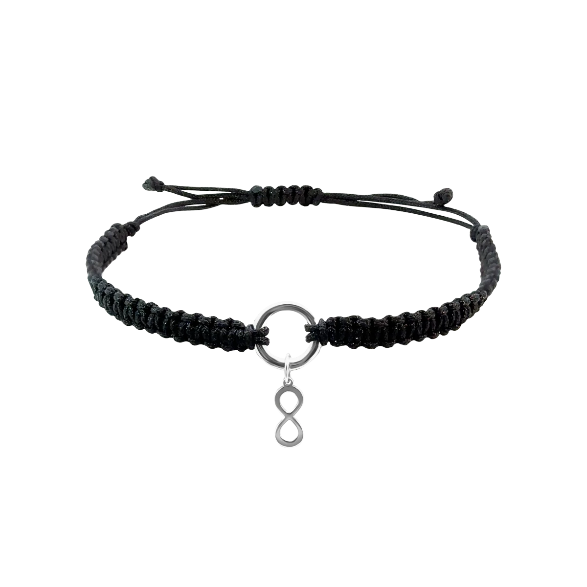 Brățară macramé din argint 925 cu cerc contur și simbol infinit suspendat