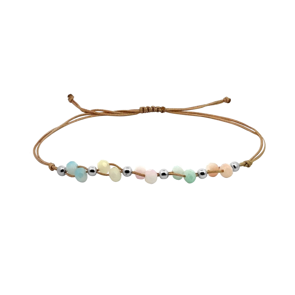 Brățară de gleznă din argint 925 cu cristale colorate și macramé