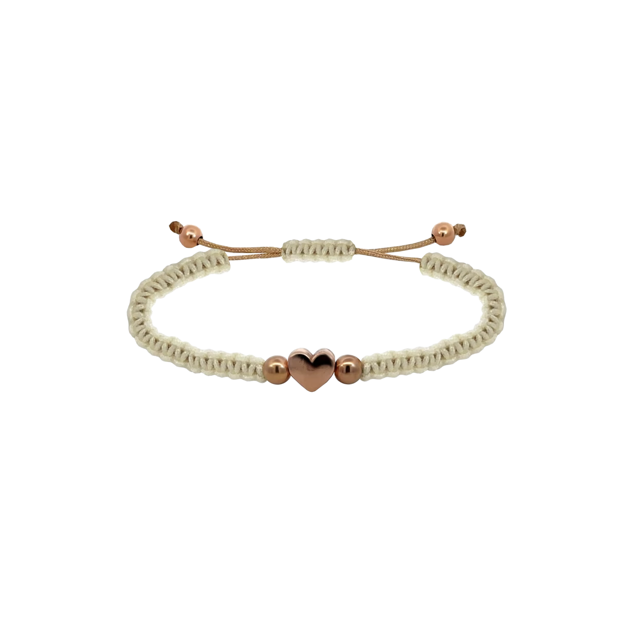 Brățară cu Inimă Macrame din Argint 925 Placat cu Aur Roz Cadou Perfect pentru Ea