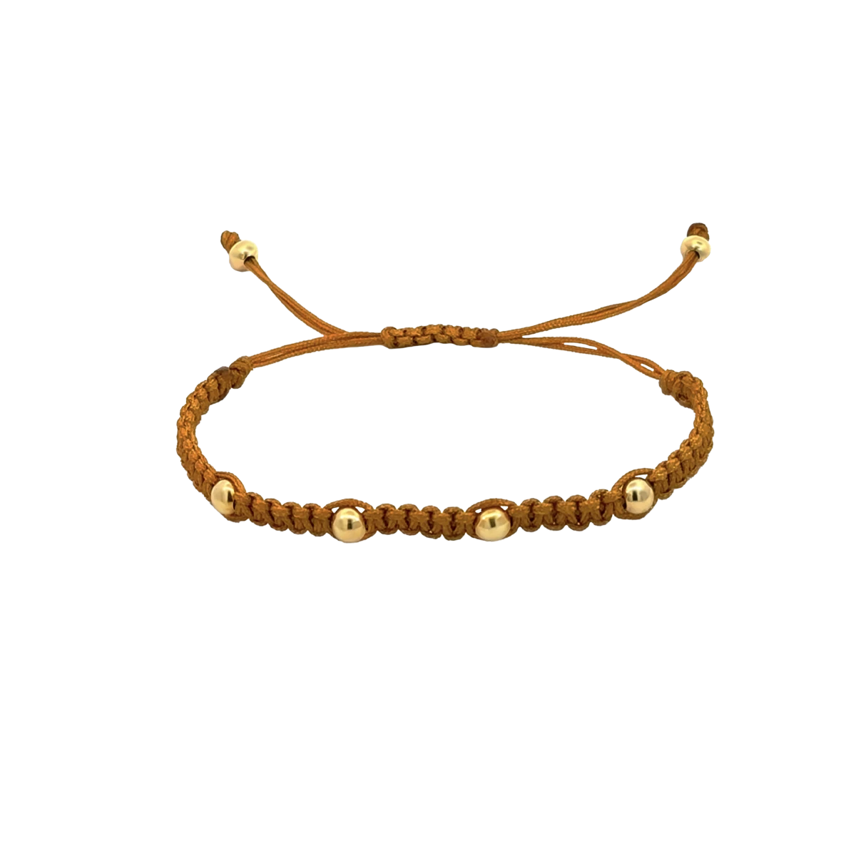 Brățară macrame cu mărgele placate cu aur galben, argint sterling 925
