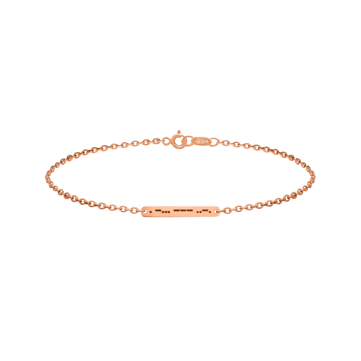 Brățară din aur roz 14K cu plăcuță lungă și subțire, Morse Love