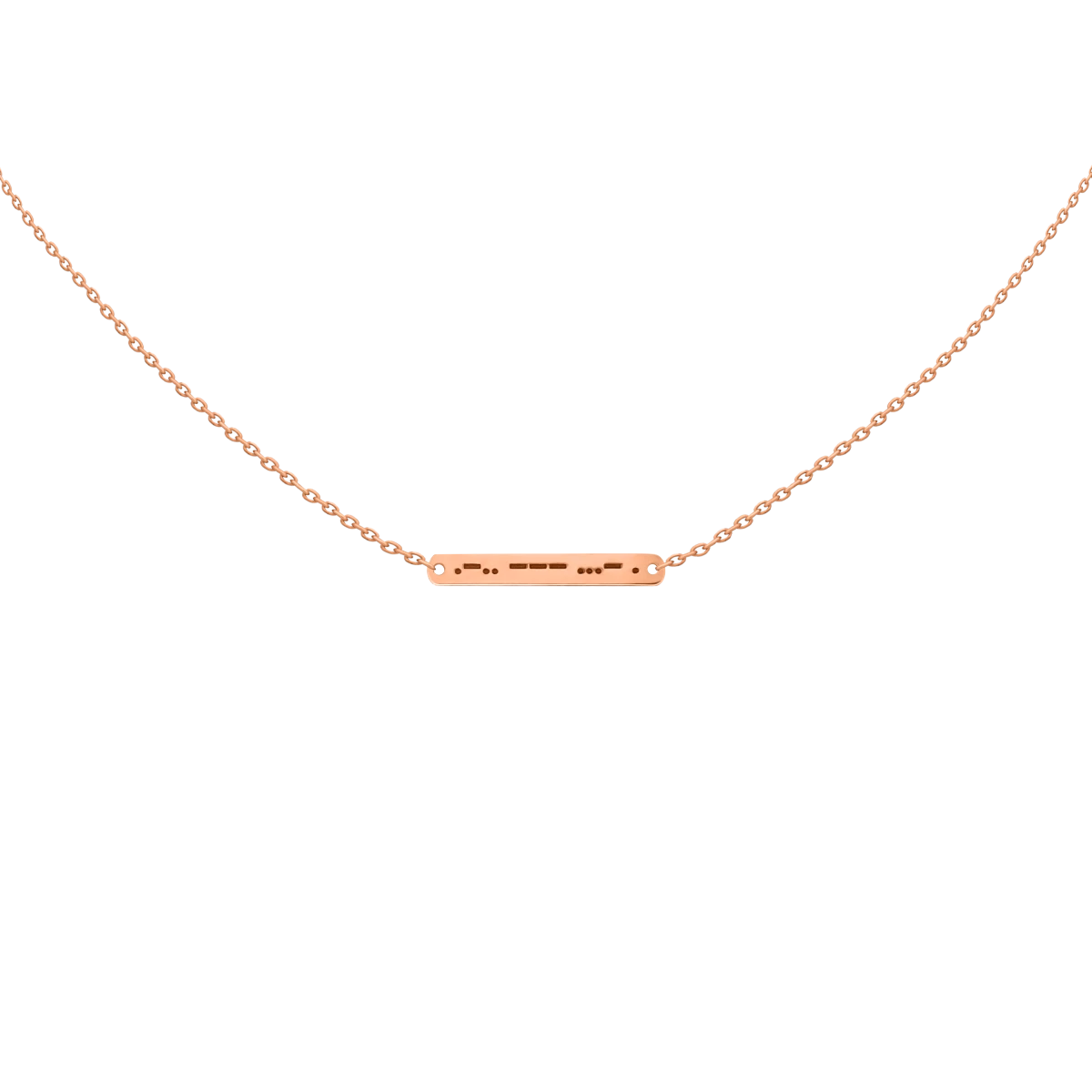 Colier din aur roz 14K cu placă lungă și subțire, Morse Love
