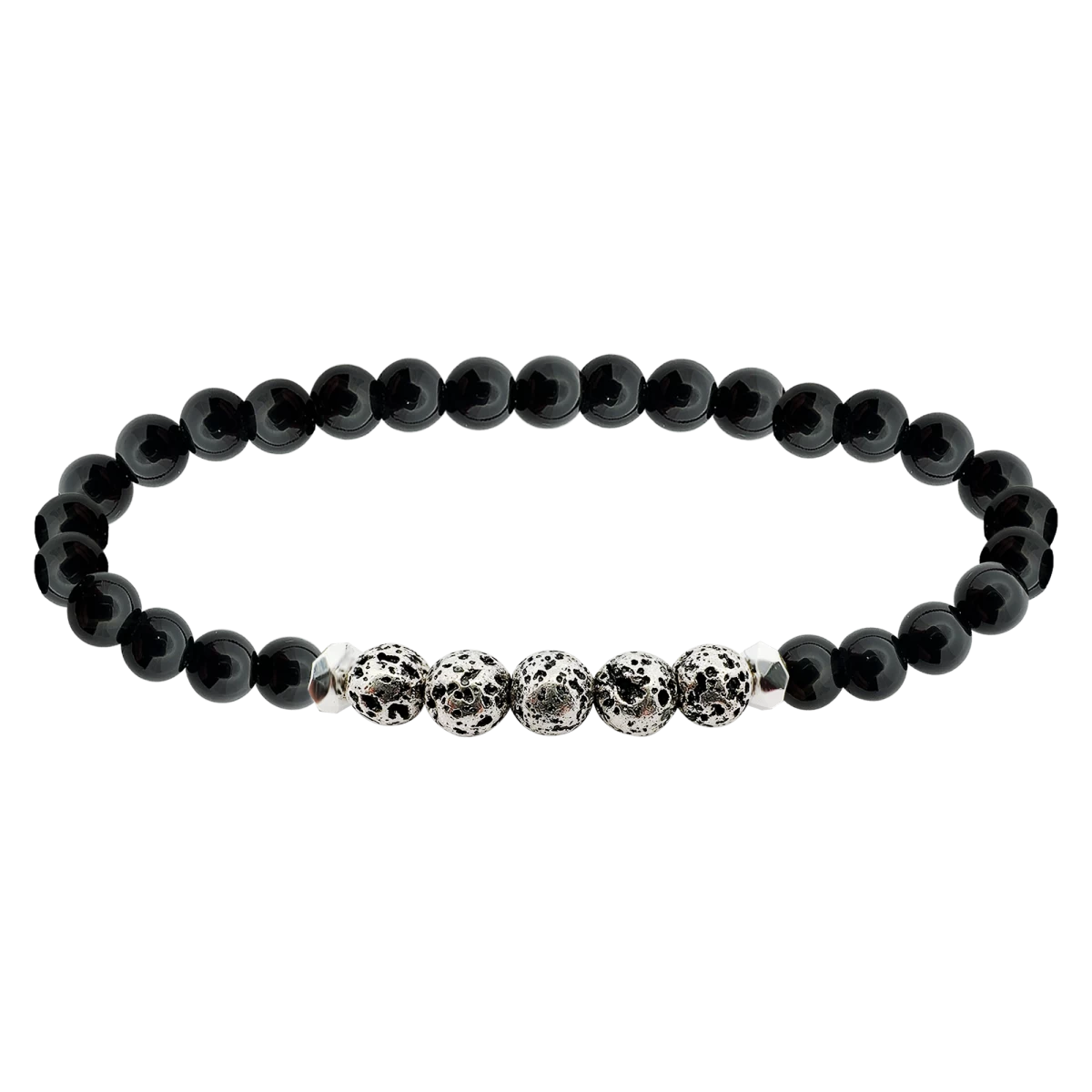 Creată pentru bărbați, această brățară cu minerale de onix și piatră de lavă și un accesoriu din argint 925 oferă nu doar un aspect elegant, ci este și perfectă pentru a exprima curajul și puterea, deoarece aceste minerale sunt în mod tradițional simboluri ale forței și perseverenței.