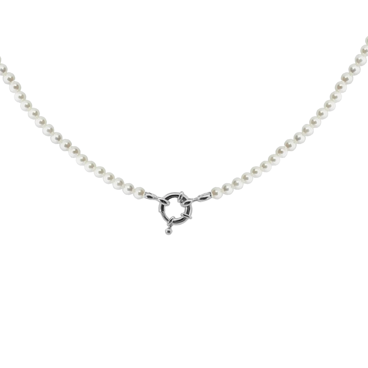 Un colier care imbina frumusetea naturala si designul modern: perlele de dimensiuni mici si inchizatoarea spectaculoasa din argint impreuna sunt o alegere perfecta pentru cei care vor sa iasa in evidenta.