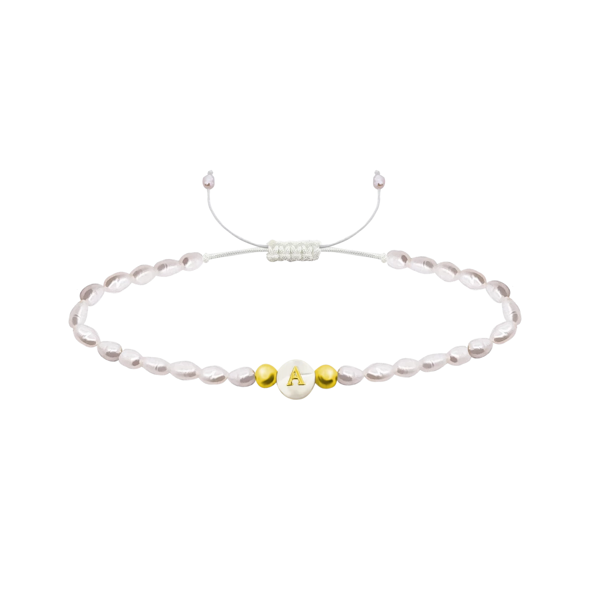Brățară cu șnur din perlă albă de apă dulce cu literă