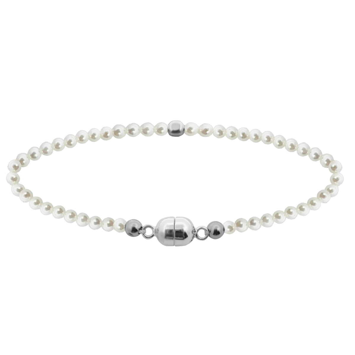 Mică perlă albă de apă dulce cu închizătoare magnetică brățară din argint 925
